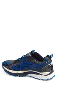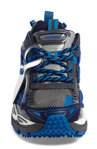 Spiky pebbles stud the segmented sole of this heavily layered sneaker that serves signature Off-White style with swooping arrows and a matching zip tag. Lace-up style Synthetic and textile upper/textile lining/synthetic sole Imported Designer Shoes Black Owned/Founded