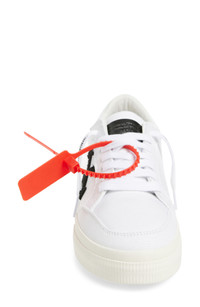 The luxury fashion house's iconic zip-tie tag lends a pop of color to a canvas low-top sneaker finished with intersecting arrow embroidery. Lace-up style Textile and leather upper/textile lining/synthetic sole Imported Designer Shoes Black Owned/Founded