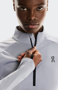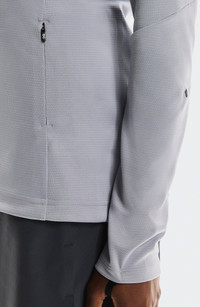 Stretchy fabric keeps up with you for miles in this running top made with thumbhole cuffs and watch windows so you can check your stats without skipping a beat. Half-zip closure Mock neck Long sleeves with thumbhole cuffs Sleeves have built-in watch windows Moisture-wicking fabric engineered for dryness and comfort 100% recycled polyester Machine wash, dry flat Imported