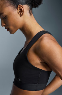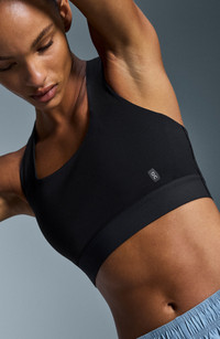 A wide band and unpadded design add to the light support of this low-impact sports bra made with a racerback that lets you move and stretch with ease. Racerback Powermesh lining for subtle shaping and lift 69% recycled polyamide, 31% elastane Machine wash, tumble dry Imported