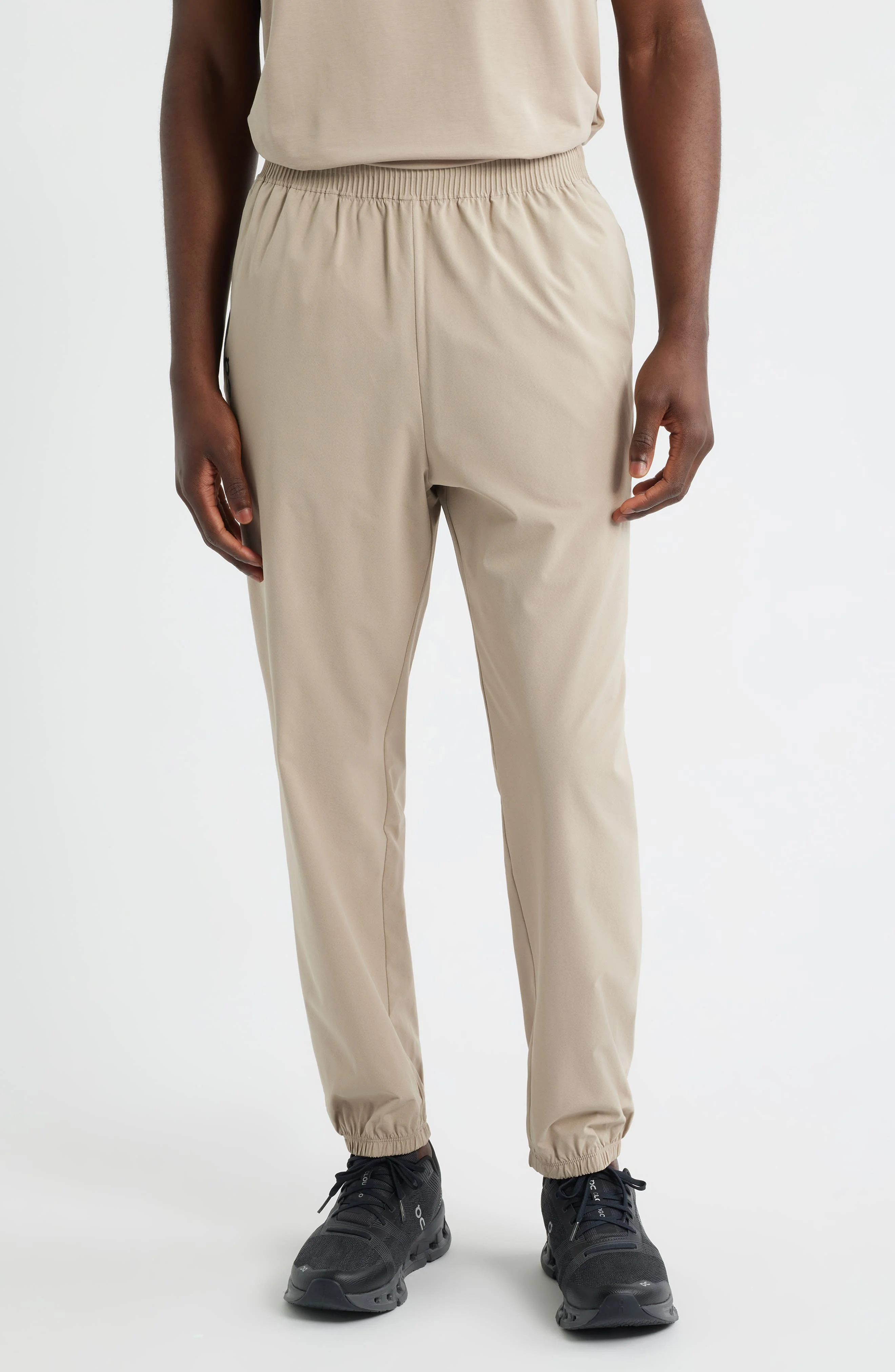 Stretchy, recycled-blend fabric takes you from warm-ups to cool downs in a these pants made with body-mapped seams that keep you moving comfortably. Pull-on style Side-seam pockets Elastic cuffs 81% recycled polyester, 19% polyester Machine wash, tumble dry Imported