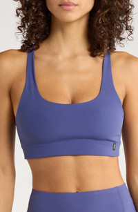 A soft, high-performance fabric keeps air flowing in a superstretchy and supportive sports bra. Scoop neck 71% polyester, 29% elastane Machine wash, tumble dry Imported