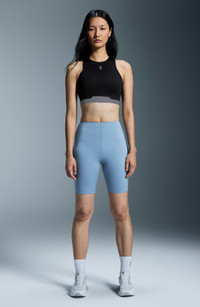 Light padding and a supportive fit make this strappy sports bra—with a ventilating mesh back panel—a comfortable choice for your low- to mid-impact workouts. Racerback Reflective logo enhances visibility in low light or at night Breathable mesh allows ventilation of excess heat for cooling comfort Moisture-wicking fabric engineered for dryness and comfort 68% recycled polyamide, 32% elastane with 83% recycled polyester, 17% elastane lining and 82% recycled polyamide, 18% elastane mesh Machine wash, dry flat Imported