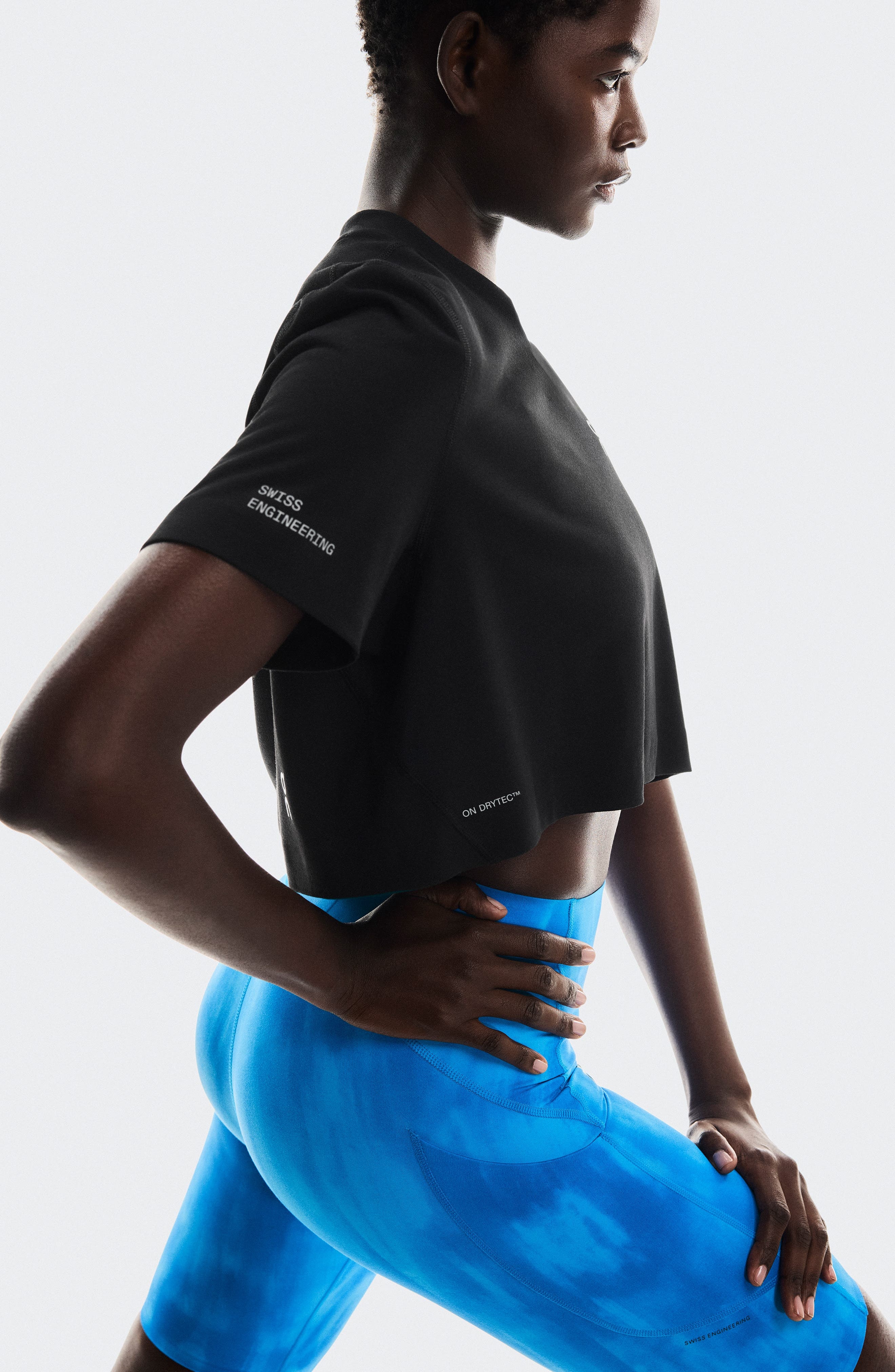 A roomy fit handles all the moves you'll make in this logo-popped crop top. Crewneck Short sleeves 98% polyester, 2% elastane Machine wash, tumble dry Imported