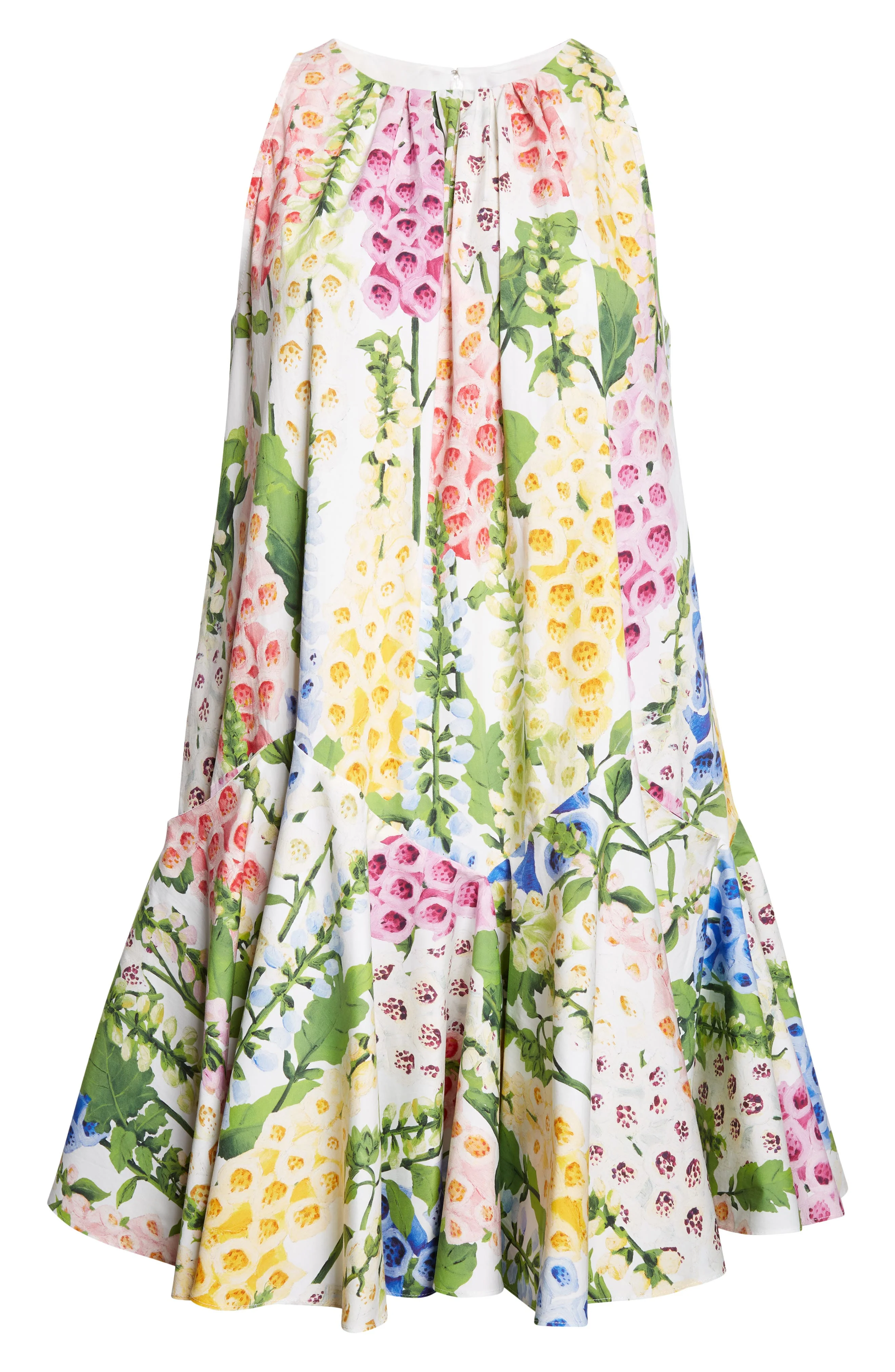 Oscar de la Renta Foxglove Print Sleeveless Stretch Cotton Dress in White Multi at Nordstrom