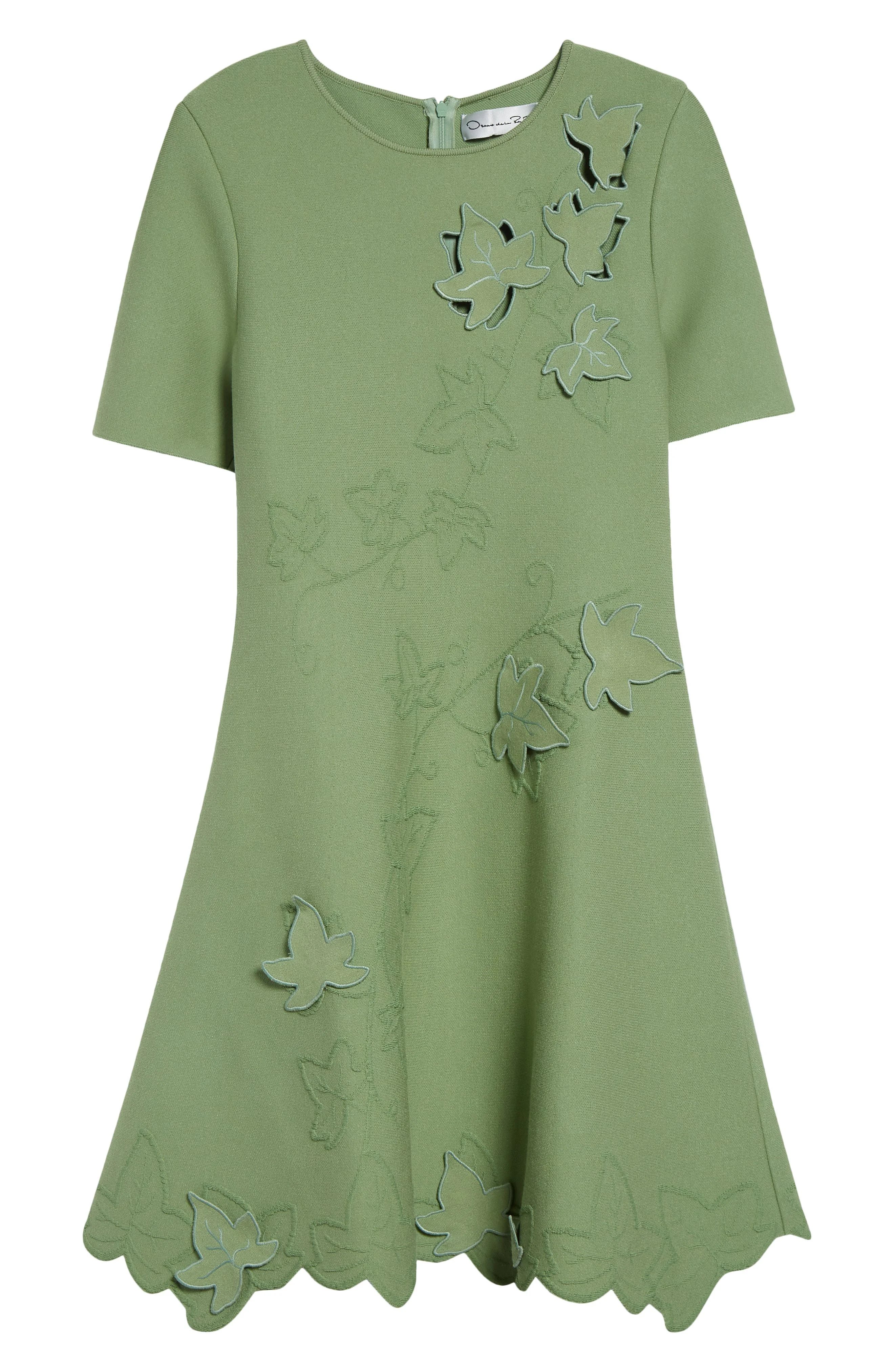 Oscar de la Renta Ivy Detail Stretch Knit Fit & Flare Dress in Green at Nordstrom
