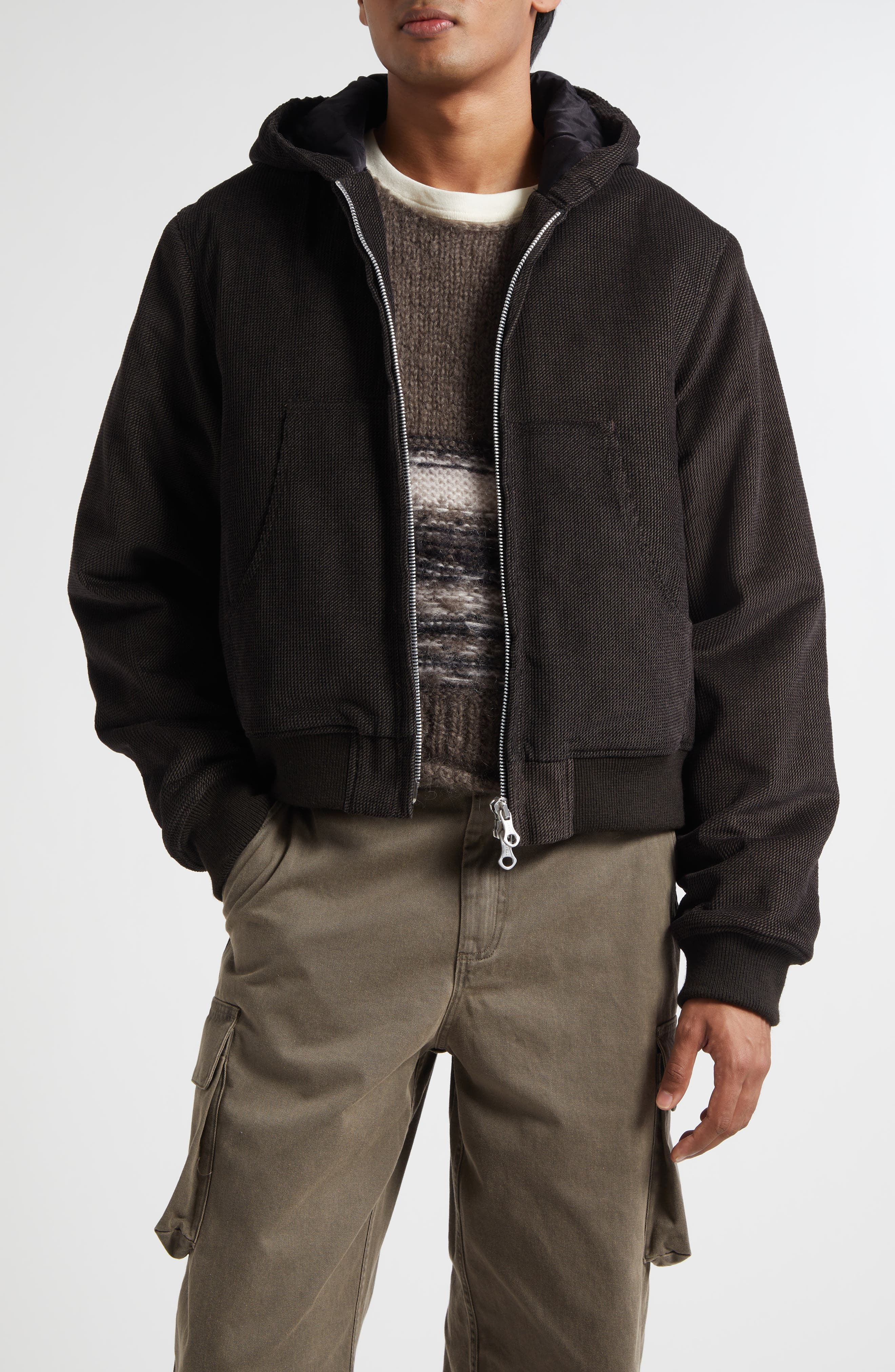 OUR LEGACY Bank Corded Twill Hooded Bomber Jacket in Dark Brown Twill Cord at Nordstrom
