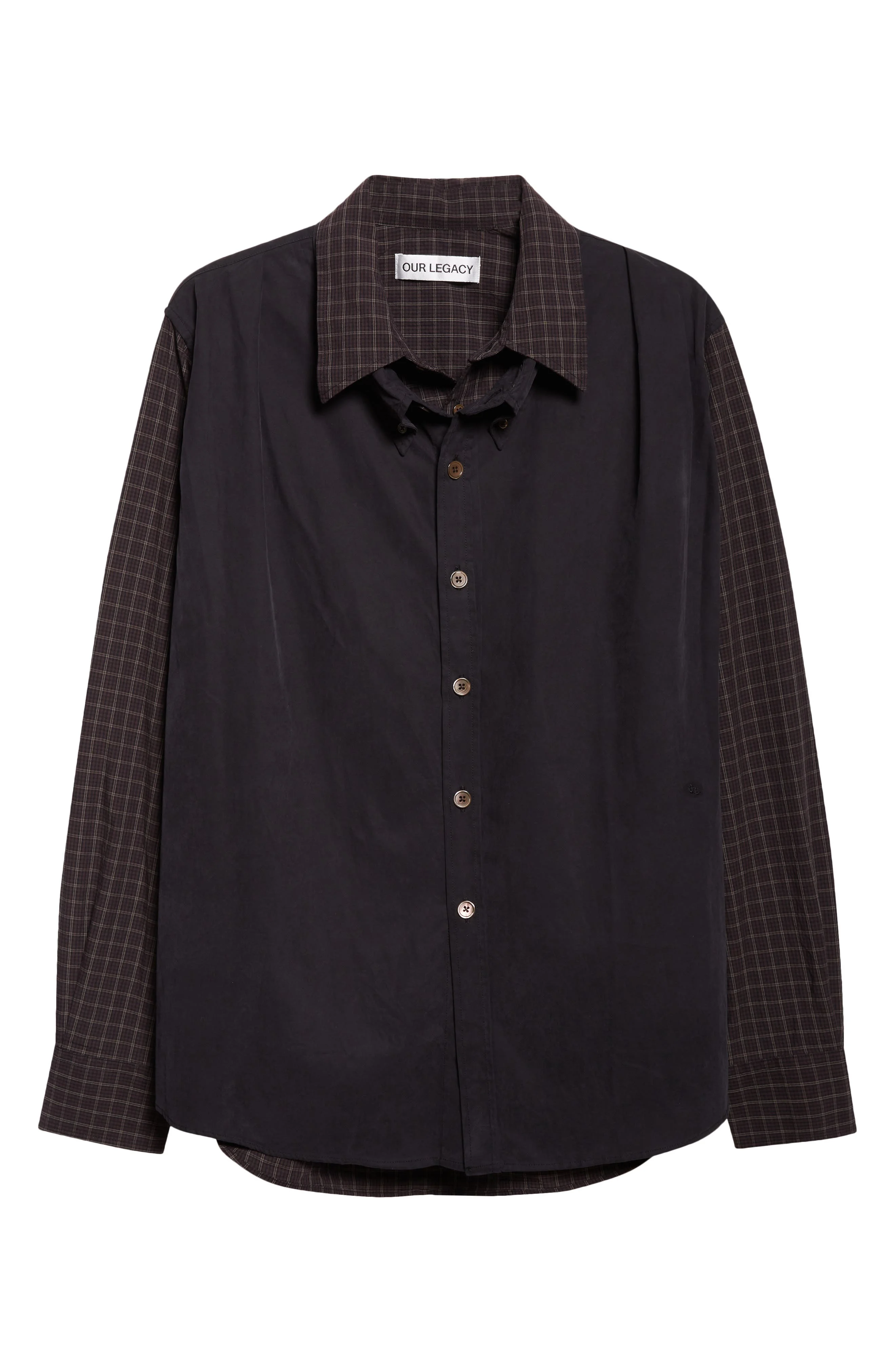 OUR LEGACY Double Borrowed Button-Up Shirt in Black Faux Lumberjack Check at Nordstrom
