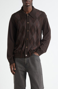 OUR LEGACY Evening Polo Argyle Wool Cardigan in Pub Argyle Fine Wool at Nordstrom