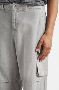 Refined yet relaxed, these lookbook-featured cargo pants capture the spirit of the streetwise label’s spring '25 narrative. The cotton-hemp composition delivers on tactile luxury, while subtle tonal colorblocking channels the bleached palette of Greek fishing outposts. Zip fly with button closure Zip fly with button closure; cargo bellows pockets; back flap pocket 89% cotton, 11% hem Dry clean or machine wash, line dry Made in Portugal Designer Clothing