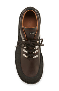 Born in Italian leather and built with mountaineer intent, this boot channels hiker heritage through a midheight shaft that angles and cushions at the ankle for all-day comfort on the move. A Kevlar® wrap shields the entire base for hard-wearing resilience, while metal eyelets and speed hooks lock down the laces with crisp precision. Underfoot, a Vibram® lugged sole grips the ground and a padded cuff rounds out the supportive build. Lace-up style Leather upper and lining/Vibram sole Made in Portugal Designer Shoes