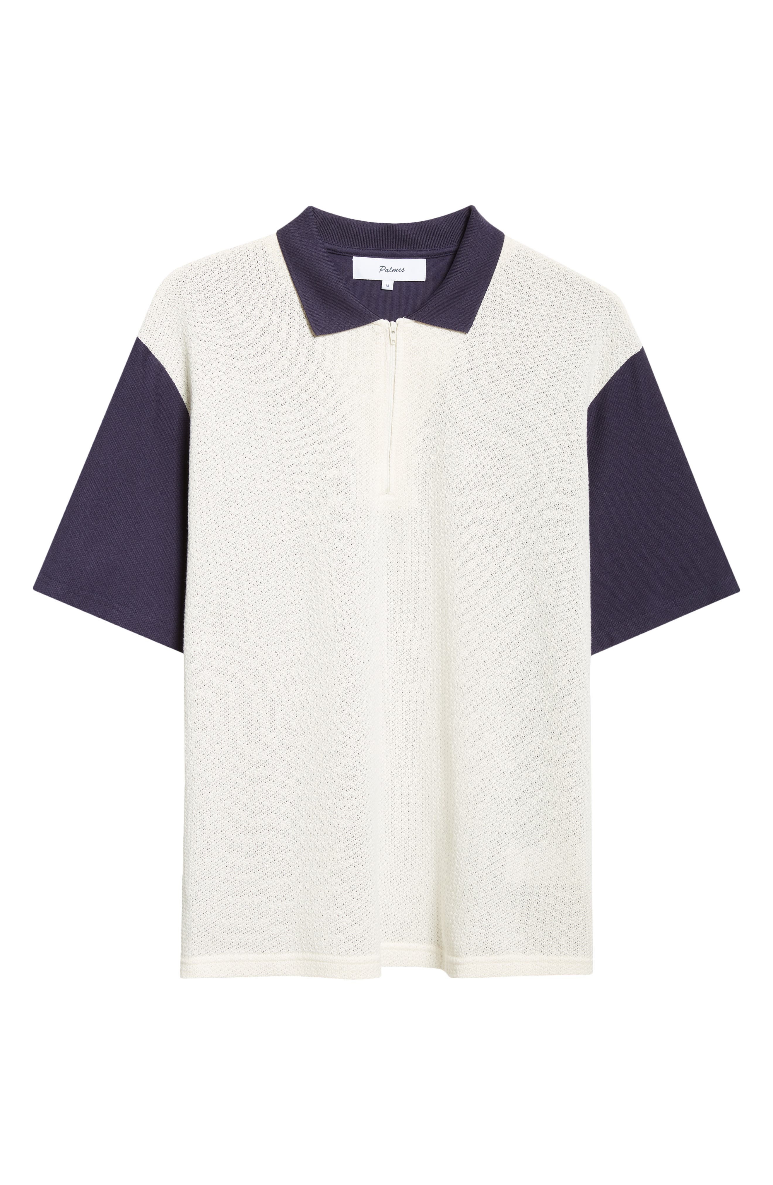 PALMES Colorblock Cotton Zip Polo in White/Dark Blue at Nordstrom