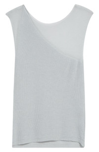 Asymmetric, sheer panels create a double-layer effect at the yoke of this sleeveless sweater is a fine, delicate knit. Boat neck Sleeveless 87% Tencel® lyocell, 13% polyamide Tencel lyocell is a more-sustainably produced fiber made with closed-loop processing Dry clean Made in Spain Designer Clothing