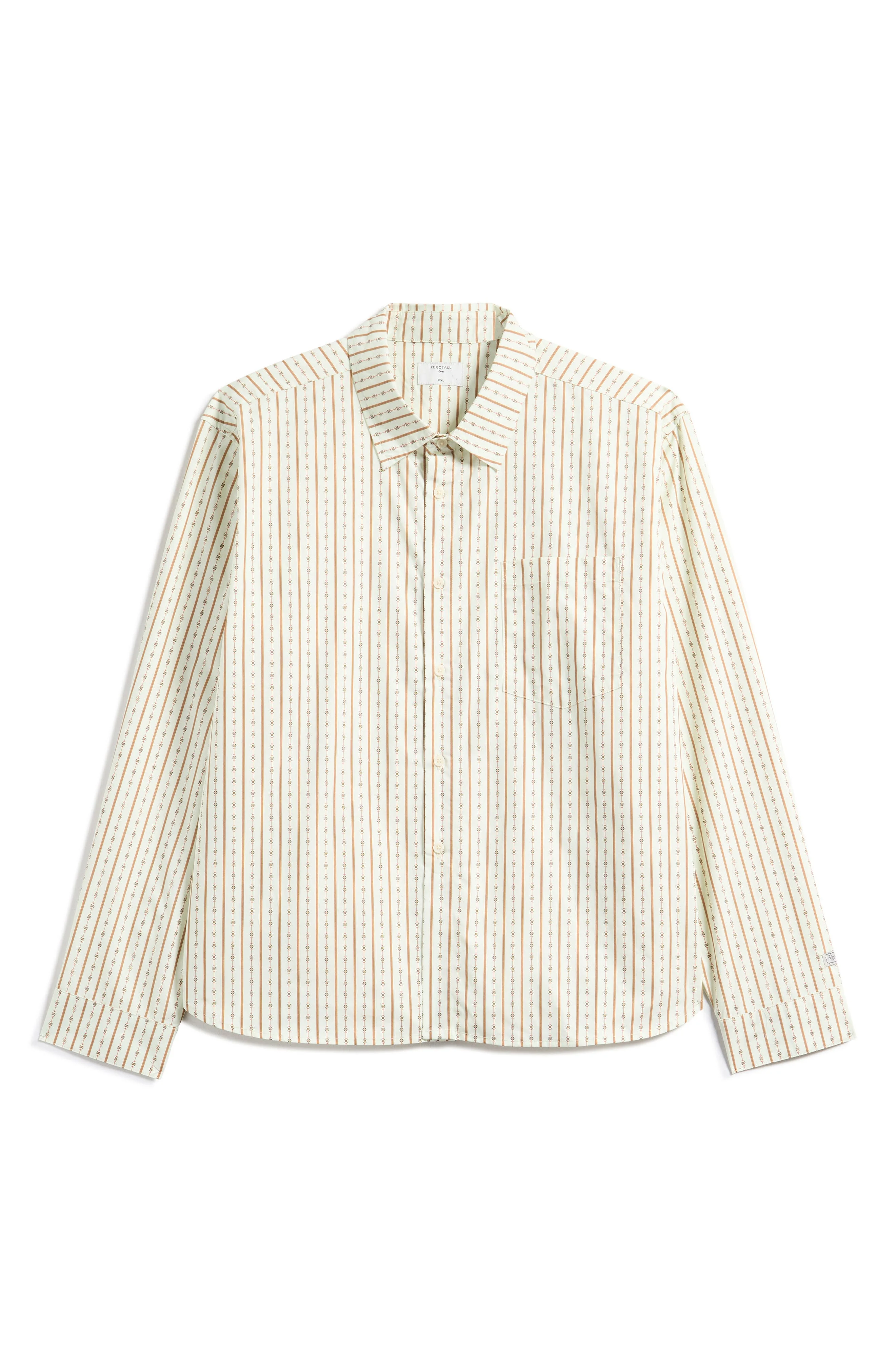 Crafted from smooth stretch-cotton, this long-sleeve button-up is brought to life with a stripe pattern reminiscent of binding tape used to finish hem stitches. Front button closure Spread collar Long sleeves with button cuffs Chest patch pocket 97% cotton, 3% spandex Machine wash, dry flat Imported