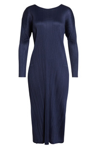 Pleats Please Issey Miyake Monthly Colors January Pleated Long Sleeve Midi Dress in Dark Navy at Nor