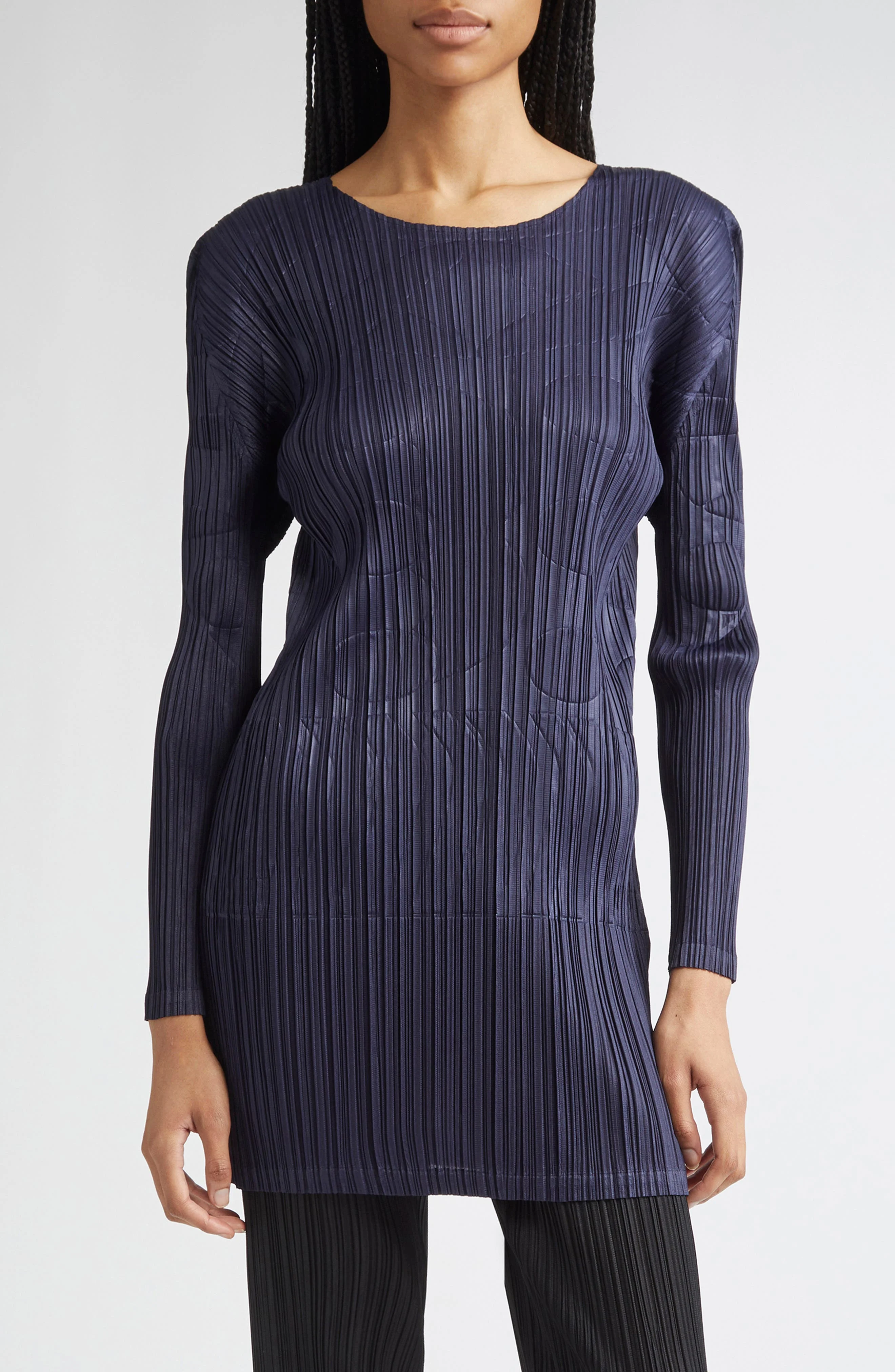 Pleats Please Issey Miyake Tune Pleated Longline Top in Navy at Nordstrom