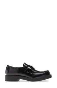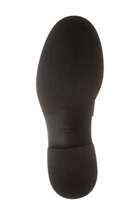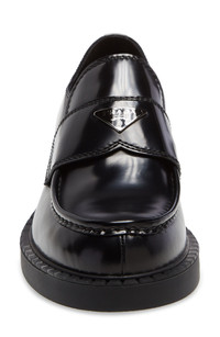 Prada's iconic triangular logo shines on a brushed-leather loafer tastefully updated with a ridged sole resembling tiny chocolate bars. Leather and synthetic upper/leather lining/rubber sole Made in Italy Men's Designer Shoes