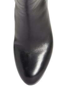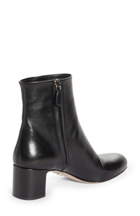 Prada's iconic triangular logo brands the topline of this versatile ankle boot crafted of supple lambskin leather and lifted on a block heel. 2" (55mm) heel (size 38.5) 5" shaft Side zip closure Leather upper, lining and sole Made in Italy Designer Shoes