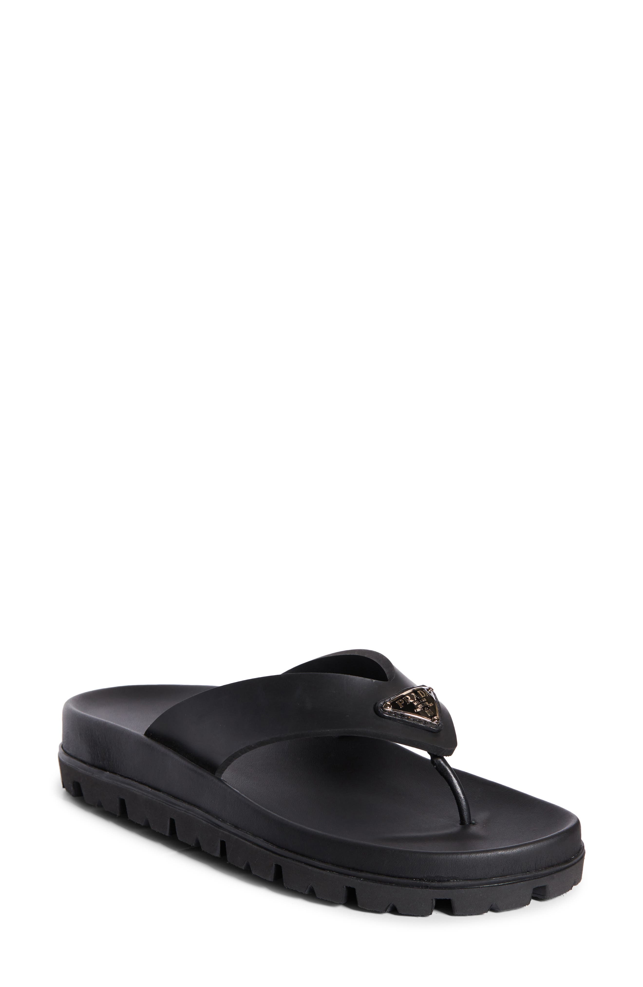 Prada Lug Sole Flip Flop in Nero at Nordstrom