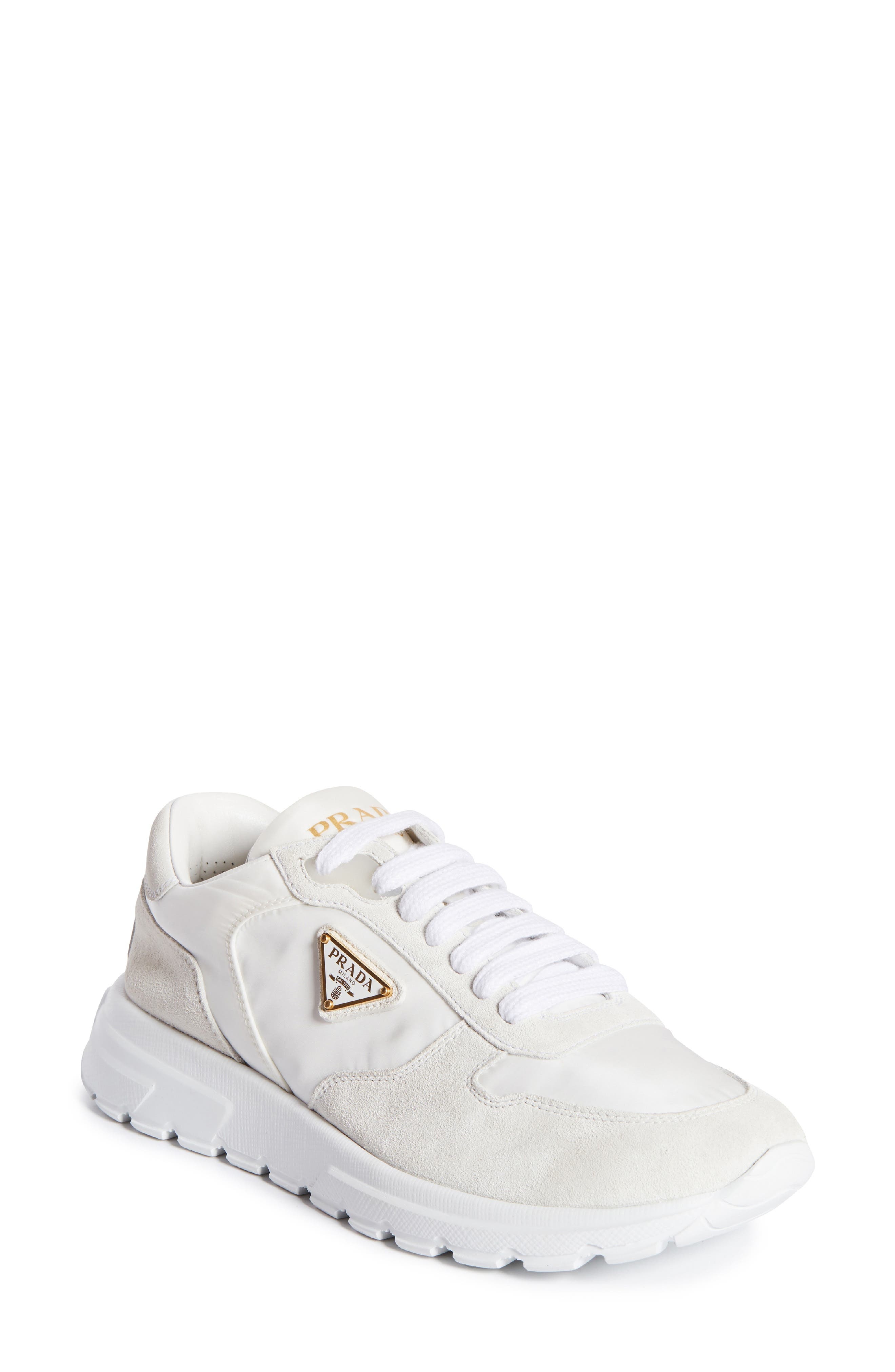 Prada Prax Nylon & Suede Sneaker in Bianco at Nordstrom