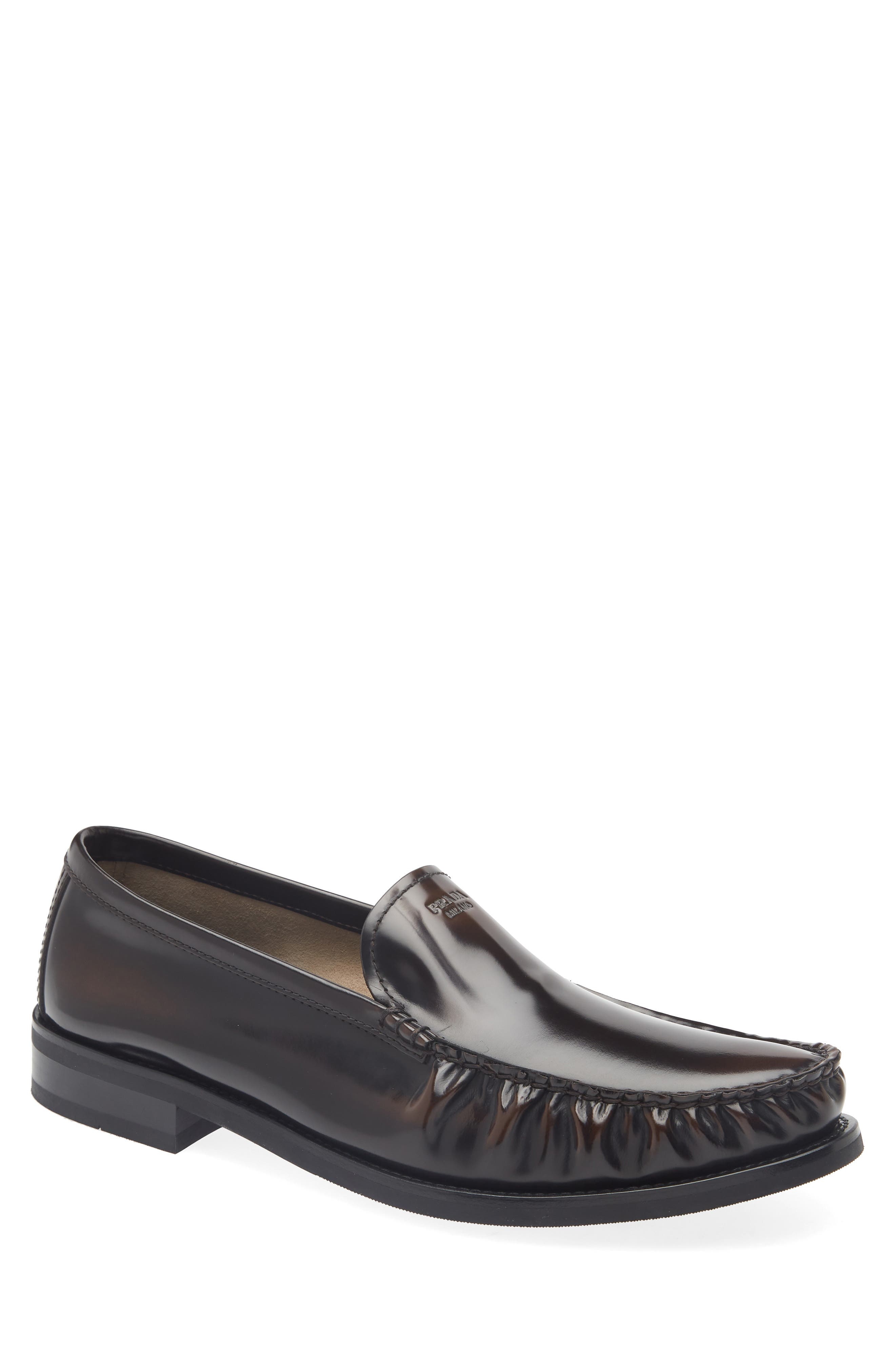 Ruched seaming at the toe gives surprising, modern texture to a heritage loafer crafted in Italy from polished calfskin leather and topped with a debossed logo. Leather upper, lining and sole Made in Italy Designer Shoes
