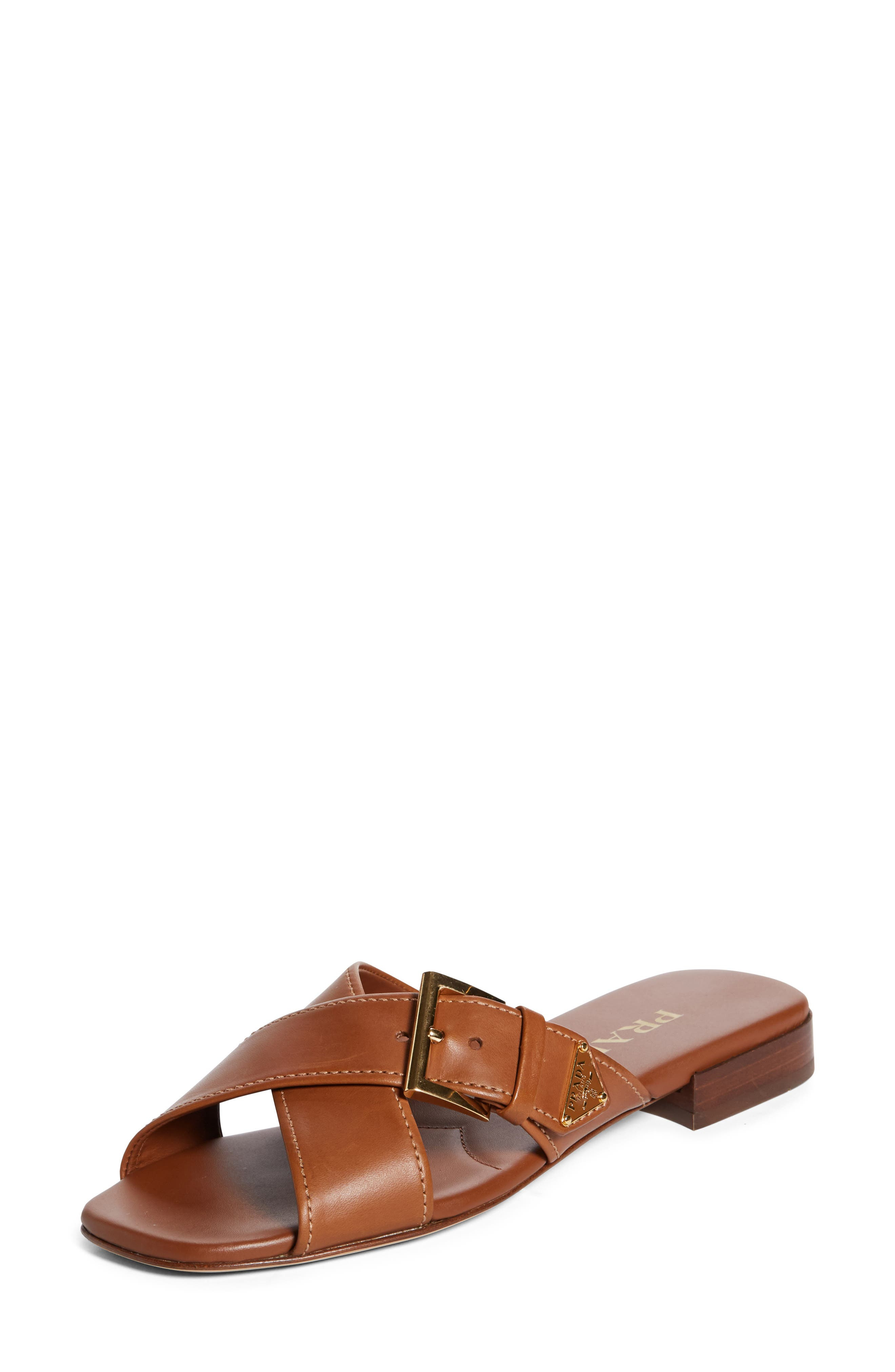 Prada Square Toe Flat Sandal in Cuoio at Nordstrom