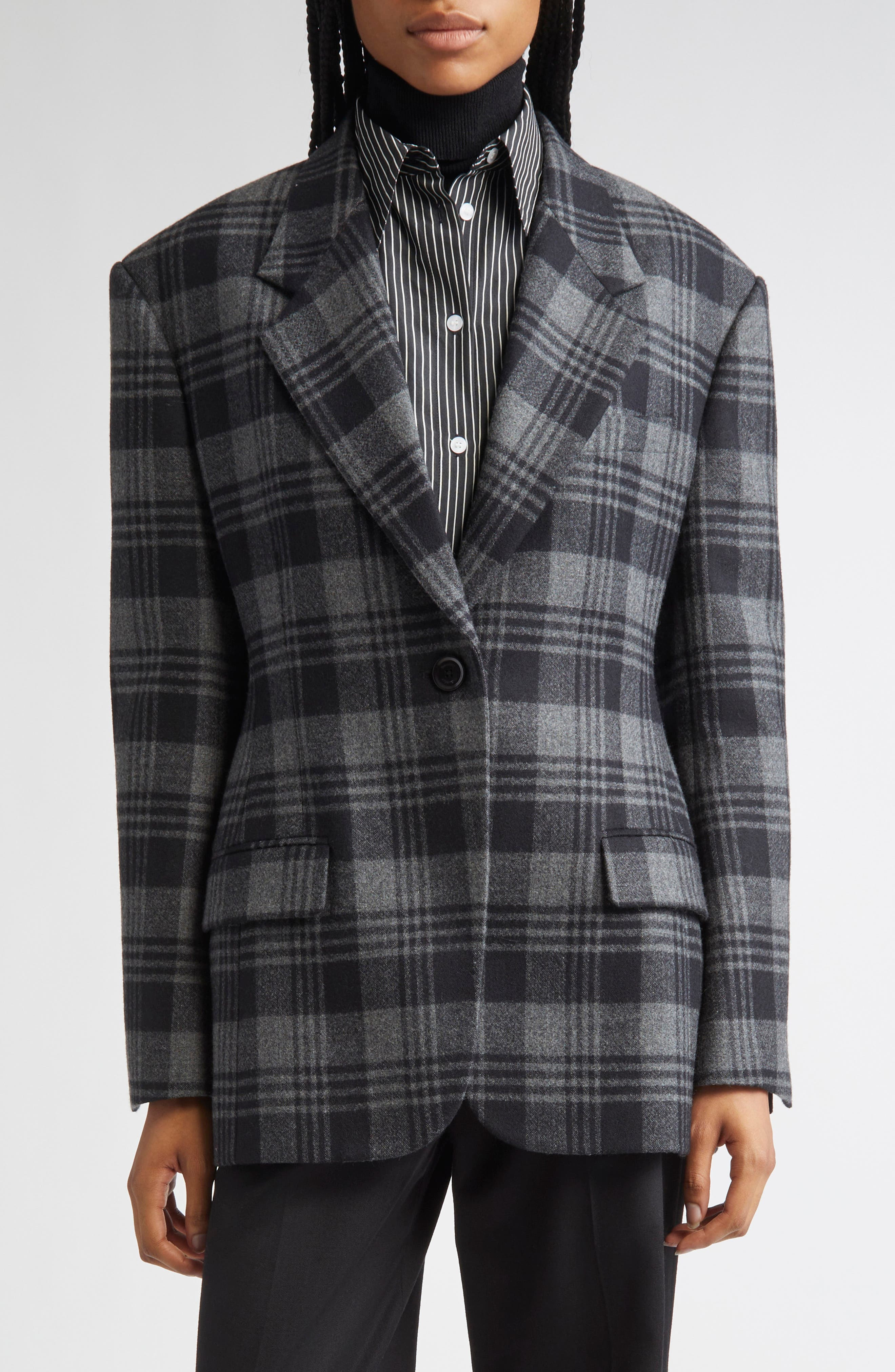 Proenza Schouler Daria Plaid Oversize Virgin Wool Blazer in Grey Multi at Nordstrom