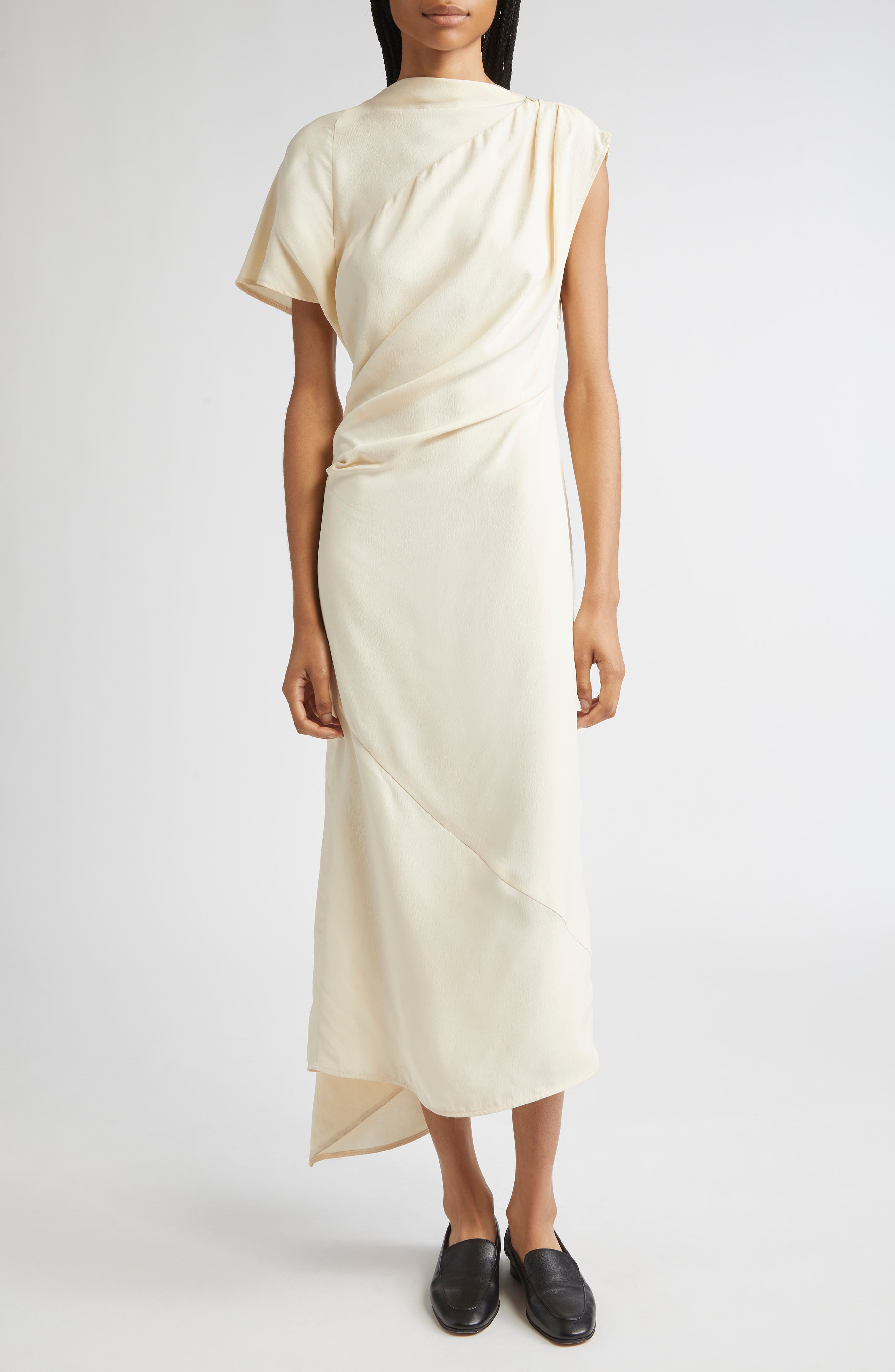 Proenza Schouler Hallie Hammered Viscose Asymmetric Hem Dress in Champagne at Nordstrom