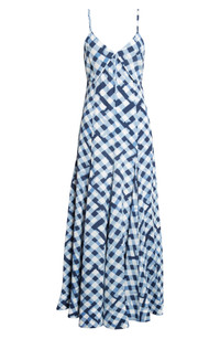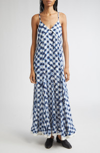 Proenza Schouler June Abstract Gingham Crêpe de Chine Maxi Dress in Dark Navy Multi at Nordstrom
