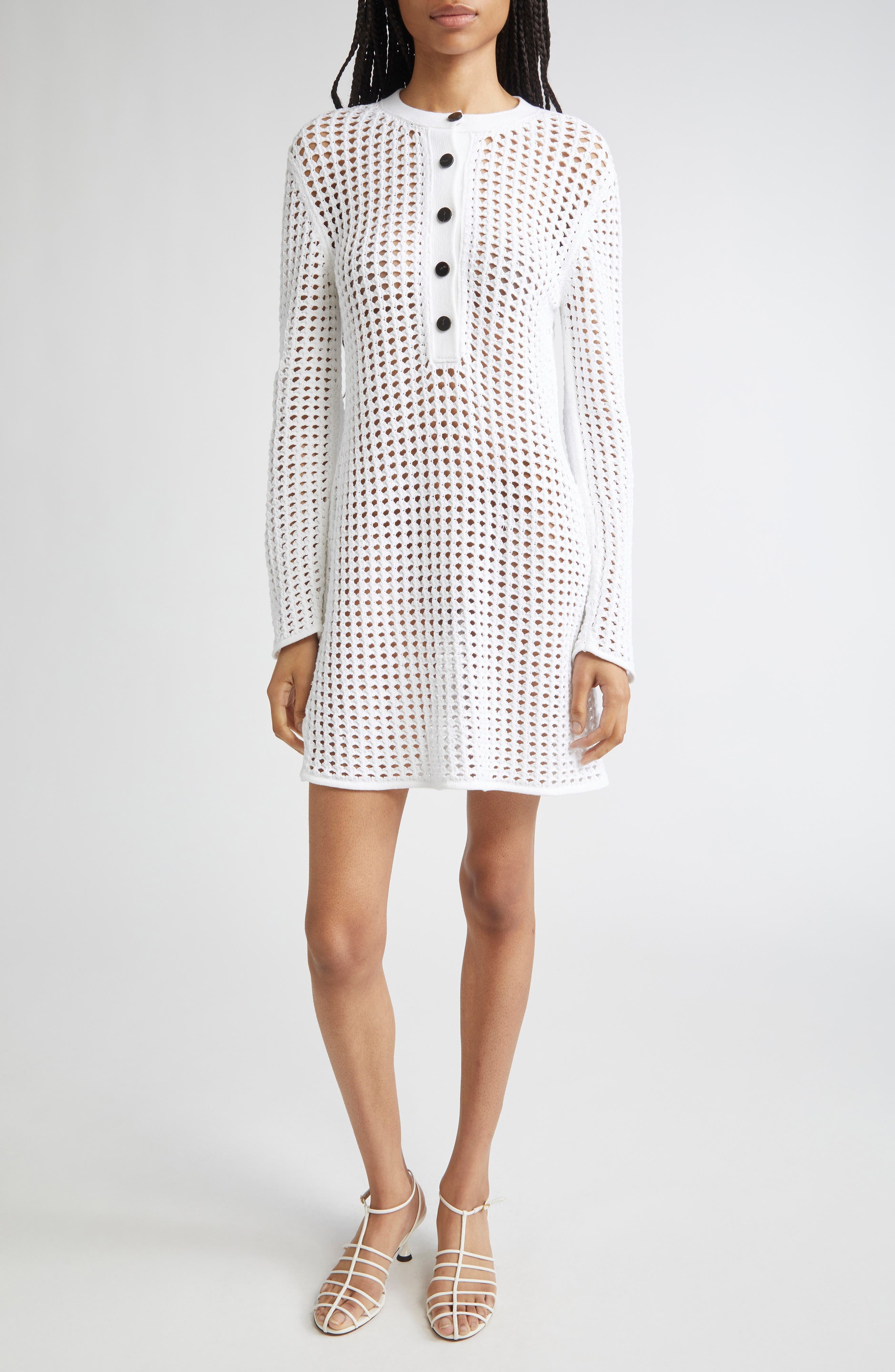 Proenza Schouler Micah Long Sleeve Open Knit Sweater Dress in Off White at Nordstrom