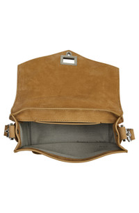 The iconic PS1 crossbody packs maximum style impact in a mini silhouette, with richly hued suede set off by shining hardware. Flip-lock closure Removable, adjustable crossbody strap Interior wall pocket Lined Leather Made in Italy Designer Handbags