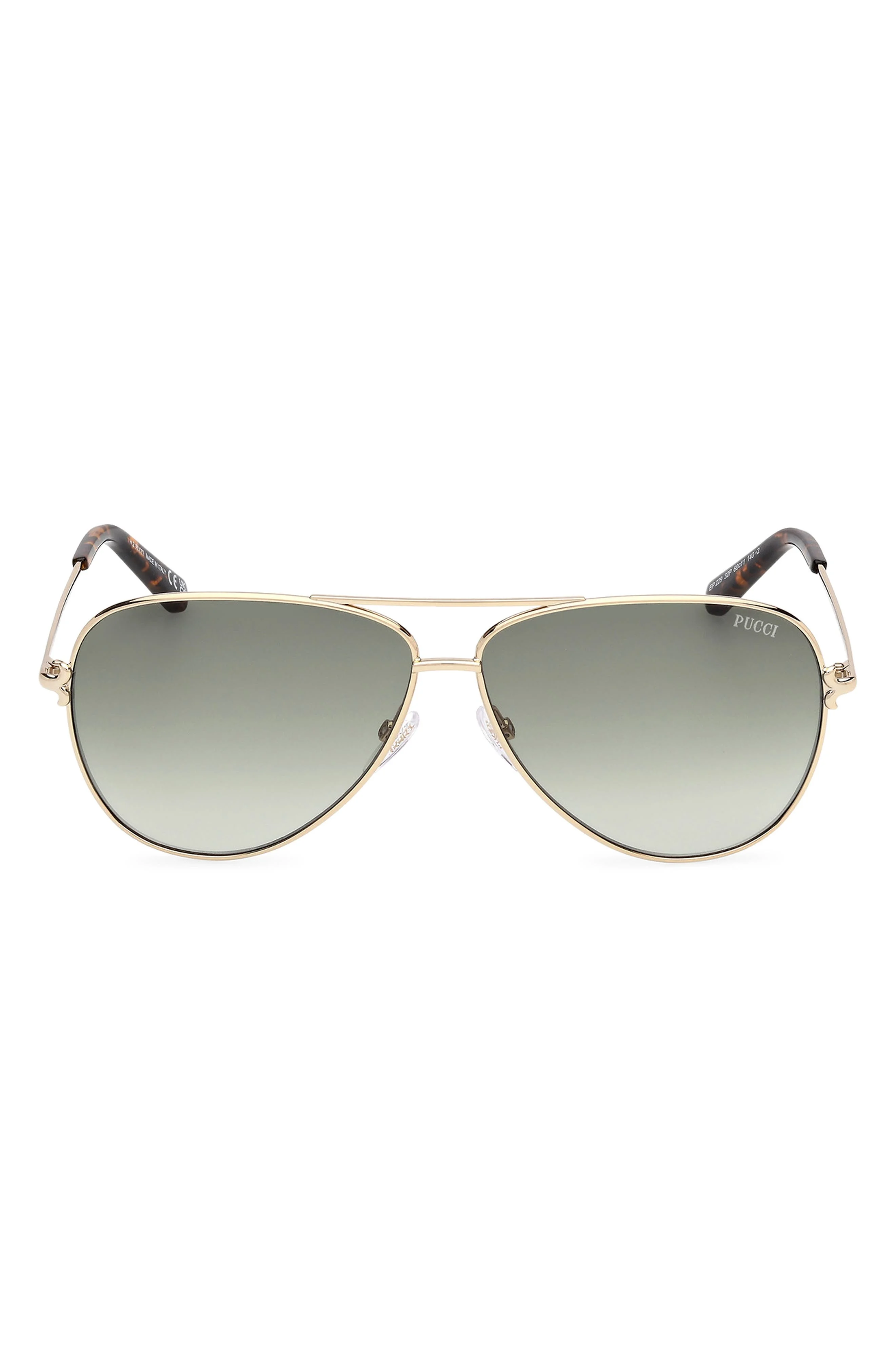 Emilio Pucci 60mm Pilot Sunglasses in Gold/Dark Havana /Grad Green at Nordstrom