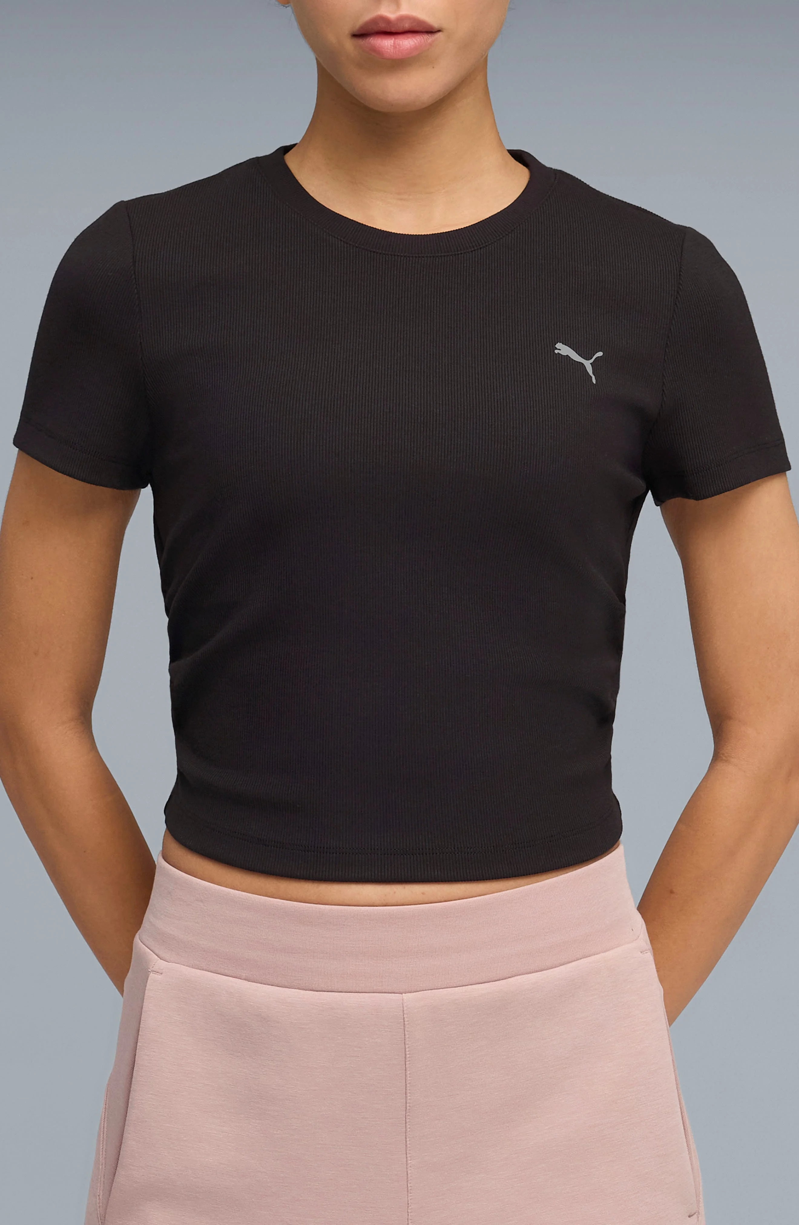 PUMA CLOUDSPUN Rib T-Shirt in Puma Black at Nordstrom