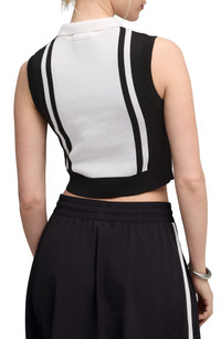 A standout colorblock and logo project your sporty ways in a cotton-blend jacquard knit crop top fashioned with a half-zip placket. Half-zip closure Stand collar Sleeveless Ribbed hem 60% cotton, 40% polyester Machine wash, dry flat Imported