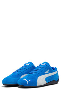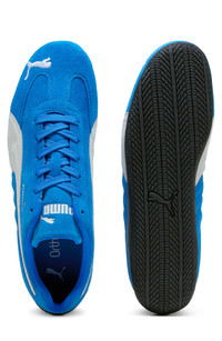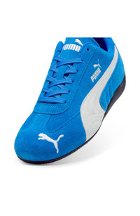 A low, streamlined profile revs up the energy of a suede-wrapped sneaker designed with an iconic racer silhouette and a mix of textures keeping the pedal to the floor. Aerodynamic stitching and an embroidered PUMA Cat on the toe maintain the fan-favorite pace. Lace-up style Removable OrthoLite® insole Leather upper/textile lining/rubber sole Imported