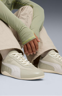 Liquid-shine overlays emphasize the sleek, streamlined profile of a sneaker whose motorsport DNA extends from an aerodynamic T-toe to a heel-wrapping sole that keeps the pedal to the floor. Debossed logo details on the toe and tongue maintain the sneakerhead approval and fan-favorite pace. Lace-up style Removable OrthoLite® insole Leather and textile upper/textile lining/rubber sole Imported