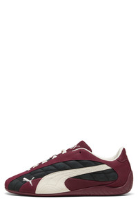Dimensional quilting and exaggerated details put a fresh spin on a heritage motorsport shoe that's revved up and ready to ride as a pedal-to-the-floor street sneaker. The low silhouette, heel-wrapping sole and embroidered PUMA Cat on the toe maintain the fan-favorite pace lap after lap. Lace-up style Removable OrthoLite® insole Leather upper/textile lining/rubber sole Imported