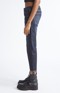 These relaxed, straight-leg jeans are made from stretch-hinted denim with a whiskered finish for signature tomboy cool. Zip fly with button closure Front scoop pockets; coin pocket 98% cotton, 2% polyurethane Machine wash, line dry Imported Designer Clothing