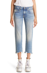 Gnarled hems bring the brand's insouciant attitude to straight-leg jeans crafted in Italy from stretch-hinted denim. 25" inseam; 15" leg opening; 9 1/4" front rise; 14" back rise (size 29) Zip fly with button closure Five-pocket style 98% cotton, 2% elastane Machine wash, dry flat Made in Italy SPACE: A shop for emerging and advanced designers