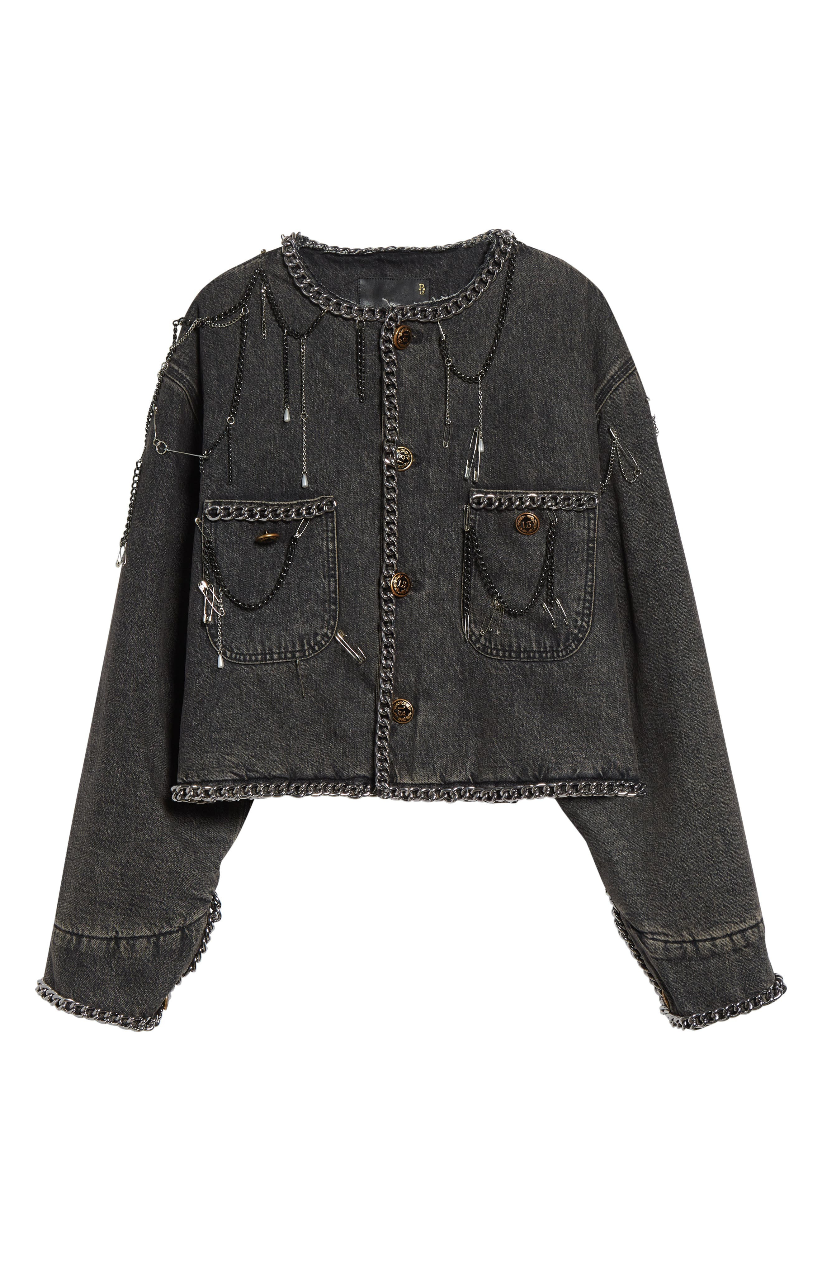 R13 Chain Embellished Denim Chore Jacket in Dusky Grey at Nordstrom