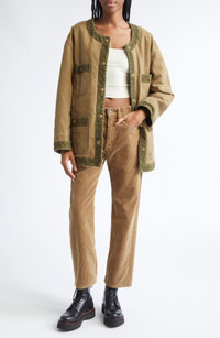 Khaki Cord Trimmed Chore Jacket