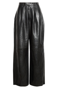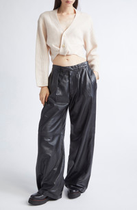 R13 Pleated Wide Leg Leather Pants in Black at Nordstrom
