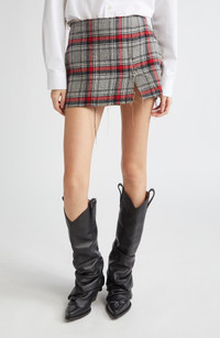 R13 Reversible Raw Cut Cotton & Virgin Wool Miniskirt in Red/Grey Plaid at Nordstrom