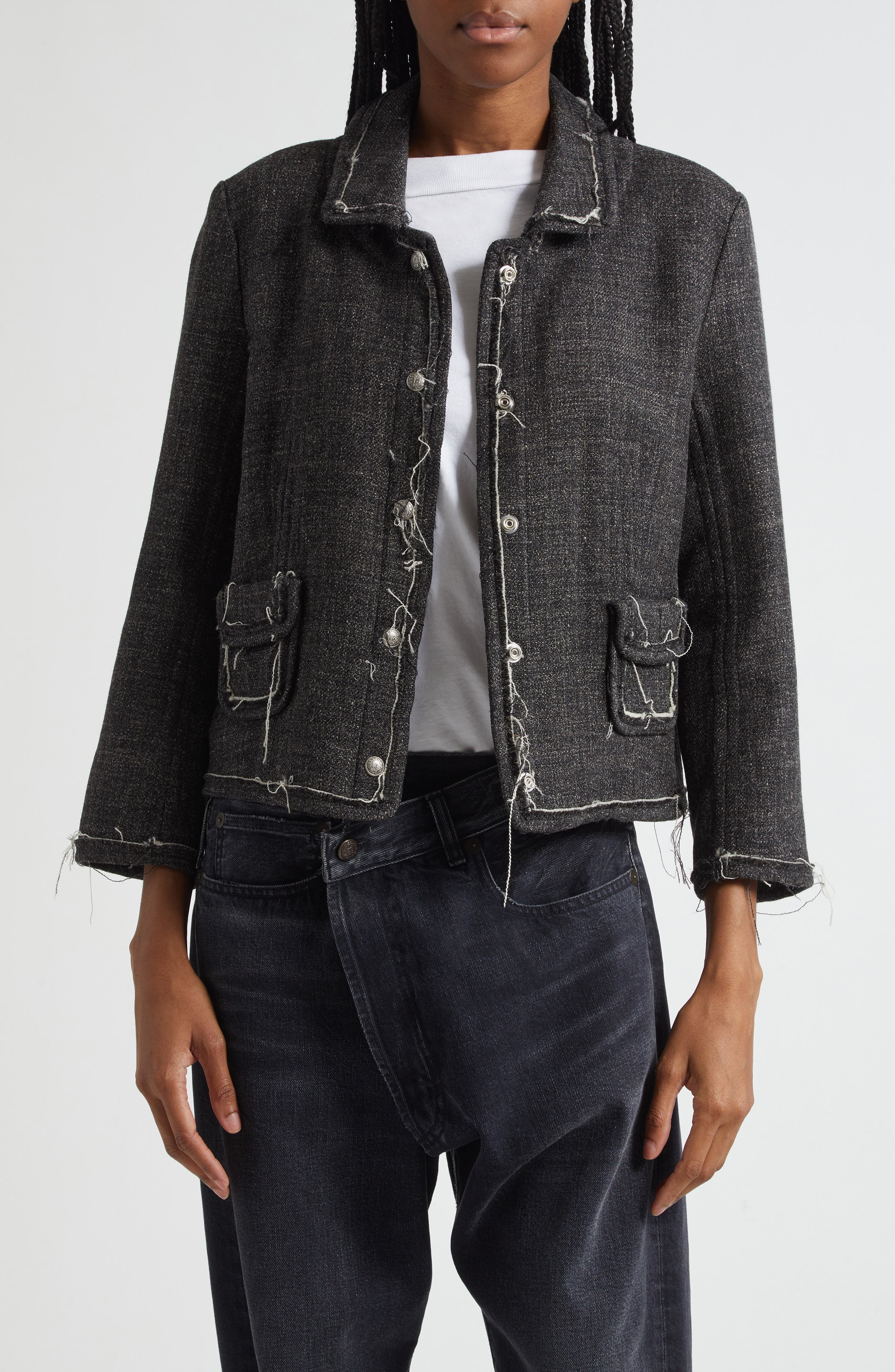 R13 Virgin Wool & Linen Boxy Jacket in Dark Grey at Nordstrom