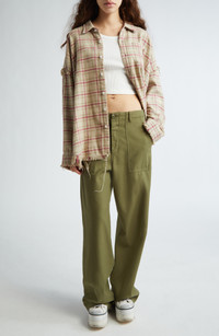 These utility pants are cut in a wide-leg silhouette from Japanese surplus military sateen that's slubbed and treated with an enzyme wash for softness. 32 1/2" inseam; 22" leg opening; 13 1/2" front rise; 17" back rise (size 29) Button fly Front slant pockets; back button-flap patch pockets 100% cotton Machine wash, dry flat Imported SPACE: A shop for emerging and advanced designers