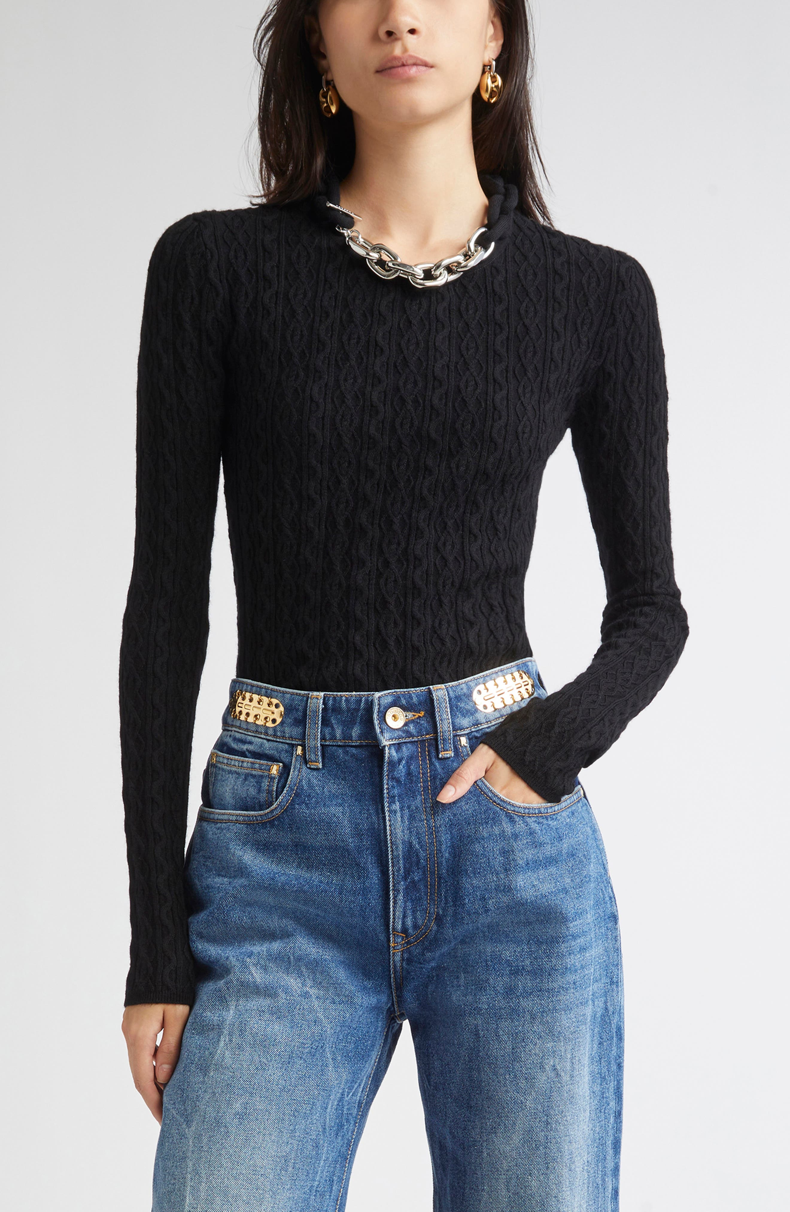 Rabanne Chain Detail Cable Knit Sweater in Black at Nordstrom
