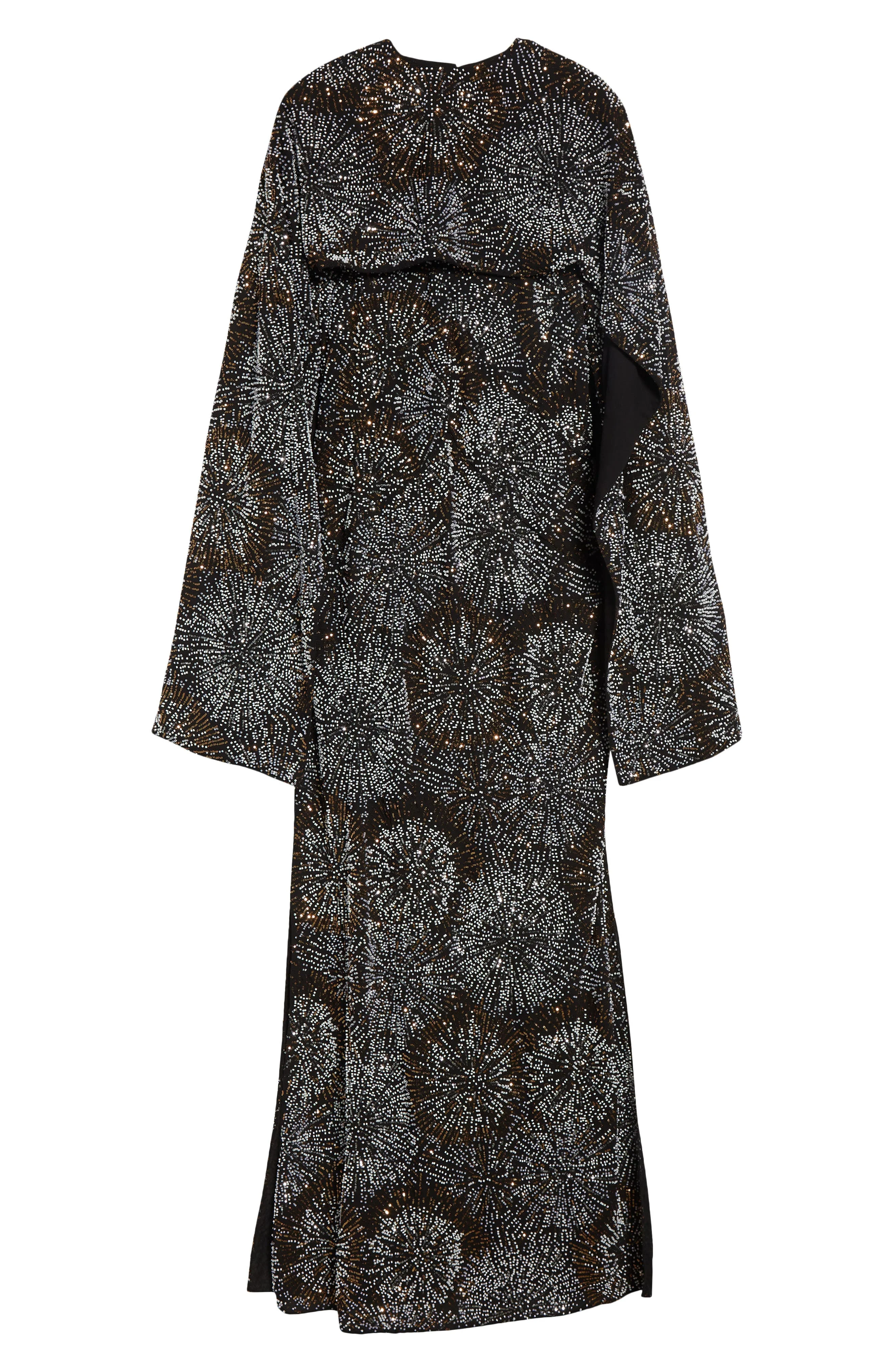 Rabanne Firework Embellished Long Sleeve Crepe Gown with Detachable Cape in Black at Nordstrom