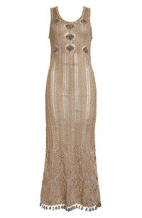 Silvery beading that recalls the label's signature disc hardware brings noteworthy shine to this tank-style sweater dress that offers glimpses of skin via airy openwork stitching. Slips on over head Scoop neck Semisheer 72% viscose, 14% metallic fibers, 13% paper Hand wash, dry flat Imported Designer Clothing