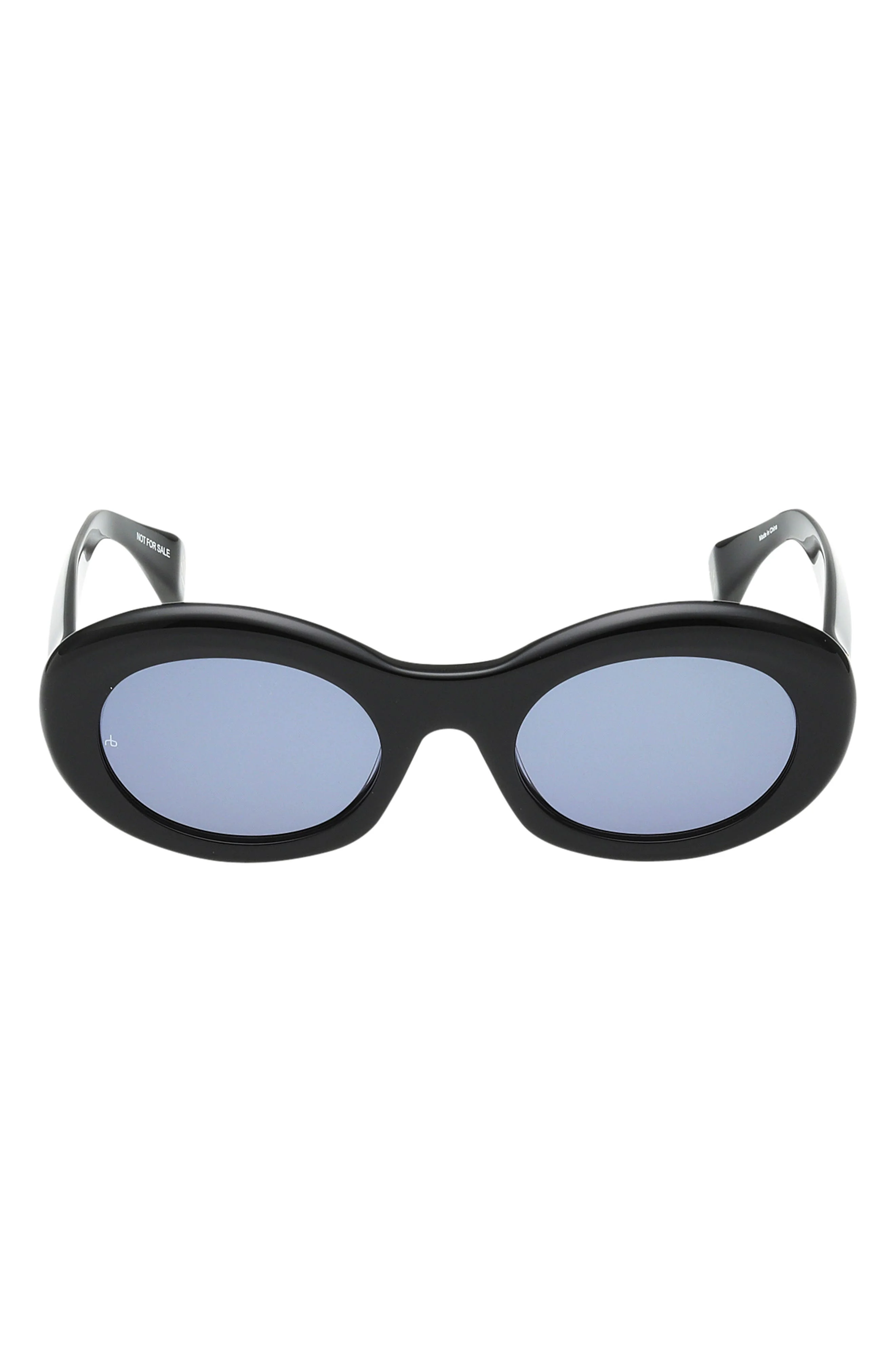 rag & bone 51mm Oval Sunglasses in Shiny Black /Dark Navy Lenses at Nordstrom