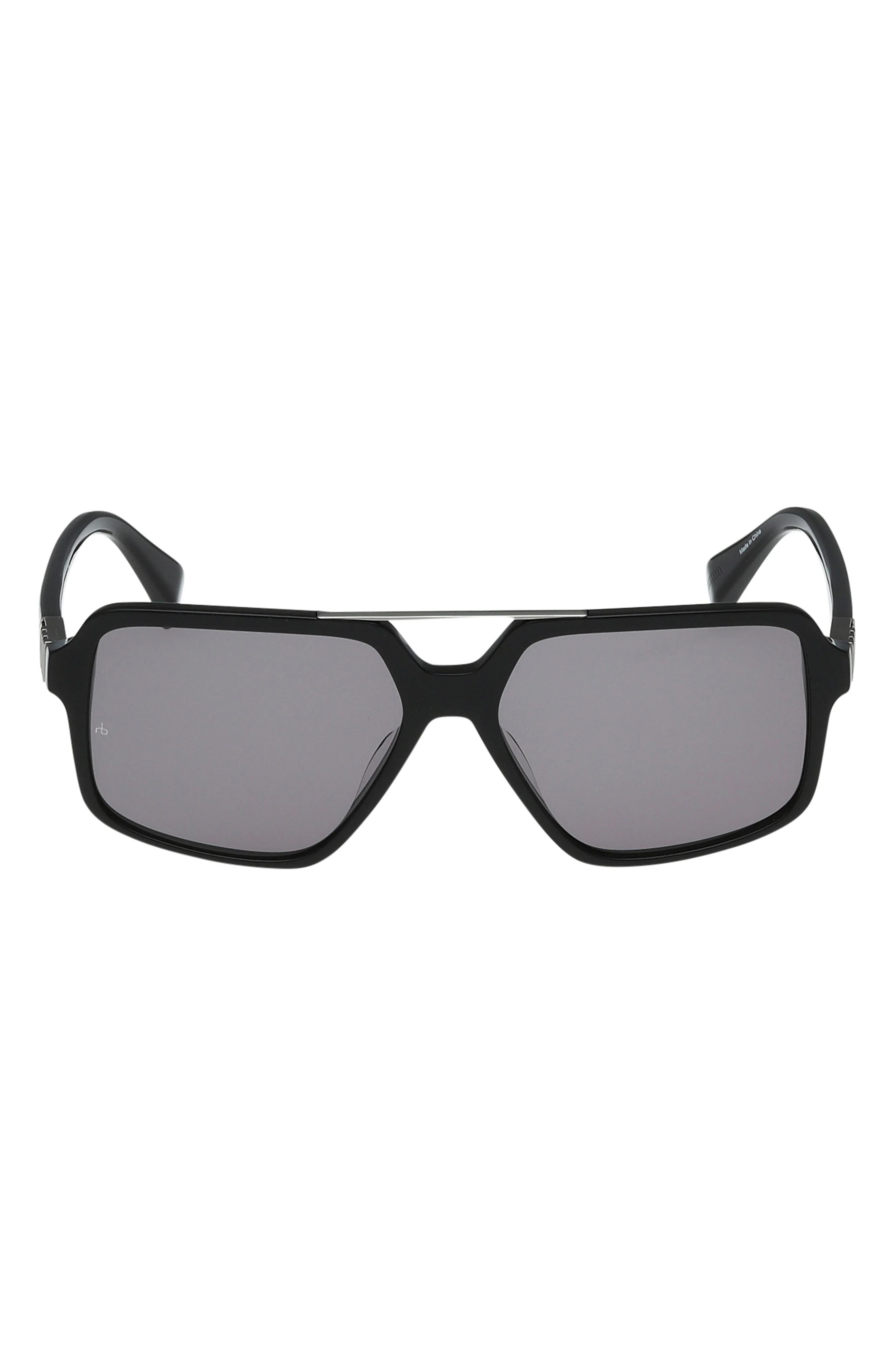 rag & bone 56mm Navigator Sunglasses in Shiny Black /Smoke Lenses at Nordstrom